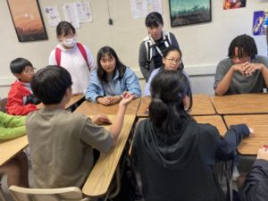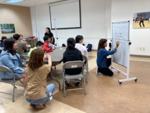 トーランスYMCAでは、ESLの先生による英語レッスンを受けました。自己紹介や出身地の紹介の仕方、アメリカでの学年の呼び方、キャンプで使える英語表現などを楽しく学びました。