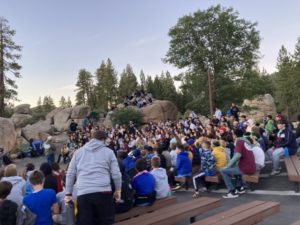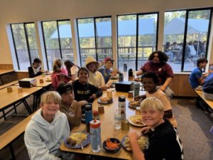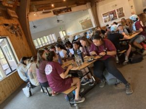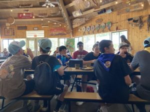 Camp Whittle到着後は、オリエンテーションなどをし、キャビングループごとに夕食を食べました!