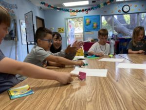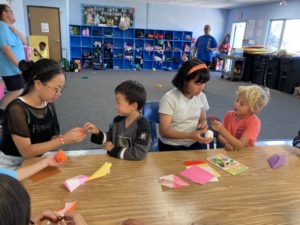 前日にアメリカの遊びを教えてもらったお礼として、今日はSeaside Elementary Schoolにて日本文化の紹介としておりがみを教えることになりました。
