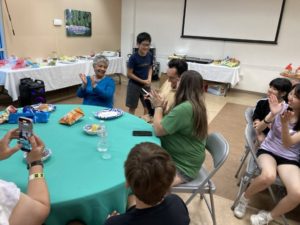 YMCAの役員やスタッフの方々も着て下さり、BBQを楽しみました。子どもたちは、この2週間の感謝の気持ちを自分の言葉で伝えました。