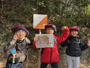 紅葉を楽しみながら、コンパス🧭と地図🗺️を使ってポイントを探しました。