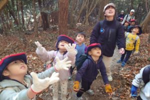 「あんなお山にのぼるのか~!」とびっくりしていたり、まだ実感がわかない子もいました。