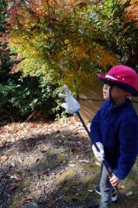 登り始めると早速素敵な棒をみつけて大事に使っていたり、落ちてくる葉っぱで遊んだりと、