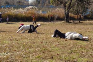 下山後も原っぱで鬼ごっこやかけっこ、ゴロゴロして遊んだりと