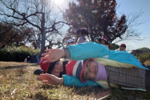 下山後も原っぱで鬼ごっこやかけっこ、ゴロゴロして遊んだりと