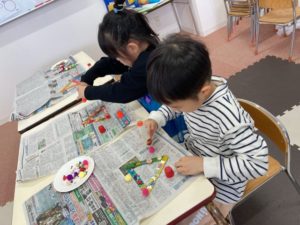 クリスマスやお正月に関連する英語表現に親しんだ後は、アート&クラフトを楽しみました。