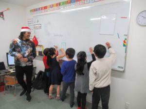 クリスマスをはじめ、世界のさまざまな冬のお祝いについて、歌やゲーム、クラフトなどを通して楽しく学びました。