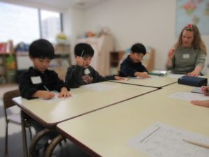 アルファベット・フォニックスの時間は、英語の文字と音のつながりを学びます。