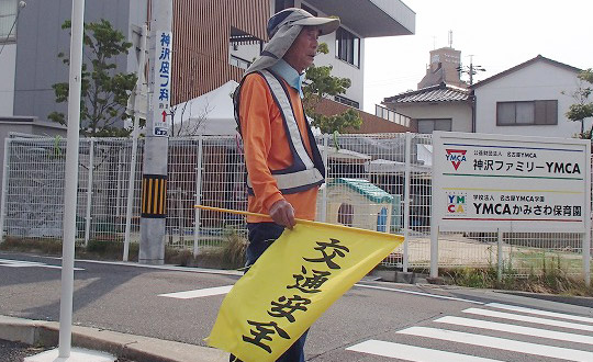 子どもたちが安全に登園・降園できるよう見守り、サポートしていただいています。交差点や横断歩道などに立ち、毎日の登校時間、下校時間に保育園・幼稚園、また保護者の方々が安全に交通できるよう交通整理を行っています。・近隣交通整理、登園サポート